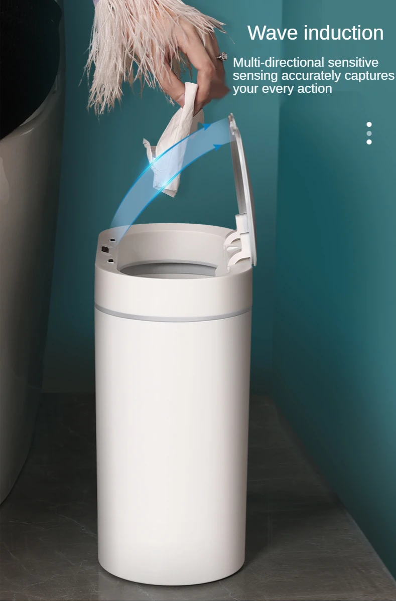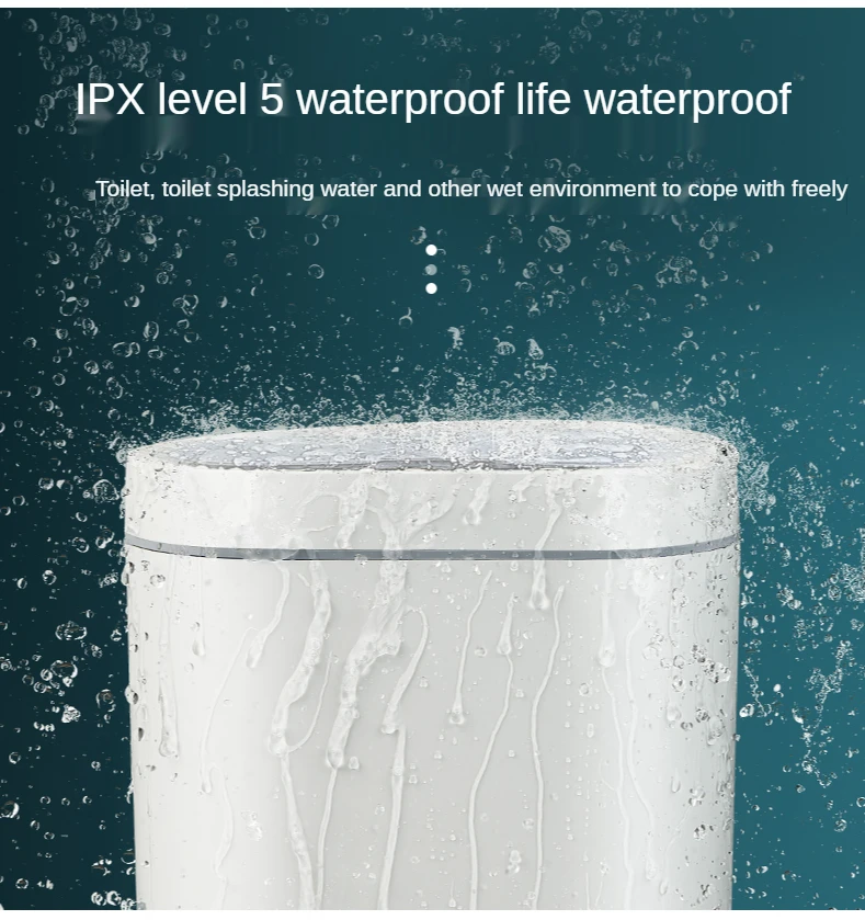 Fácil de limpiar y aislado Tecnología resistente al agua con olor La papelera de baño inteligente adopta materiales de alta calidad y un diseño avanzado para garantizar que la basura se pueda usar normalmente en el baño.evita que el agua o el ambiente húmedo dañen la unidad.