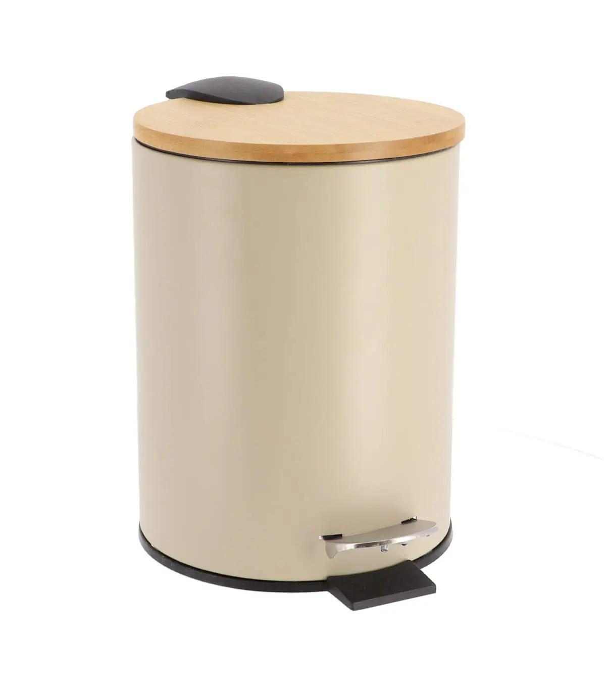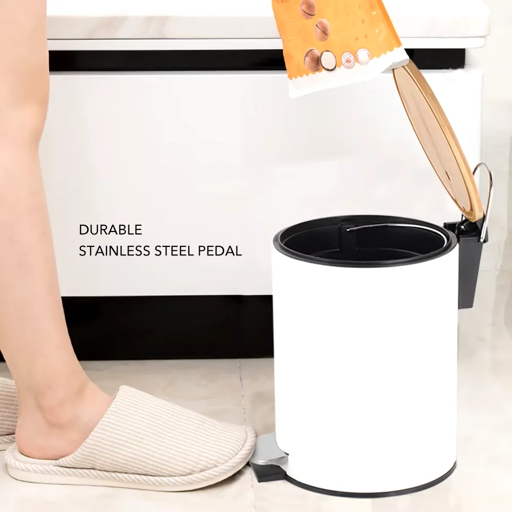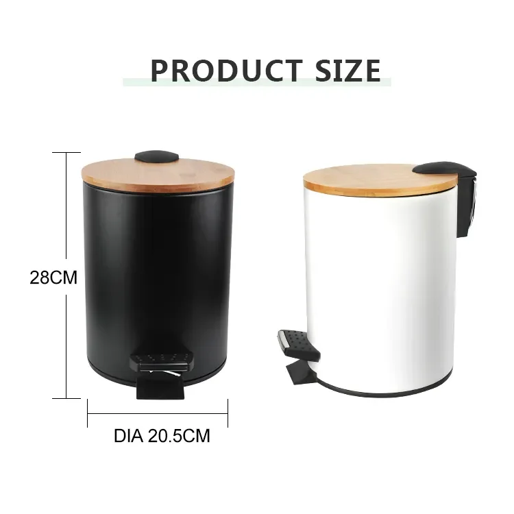 Cubo de baño metálico con tapa de bambú y una capacidad de 3 litros.