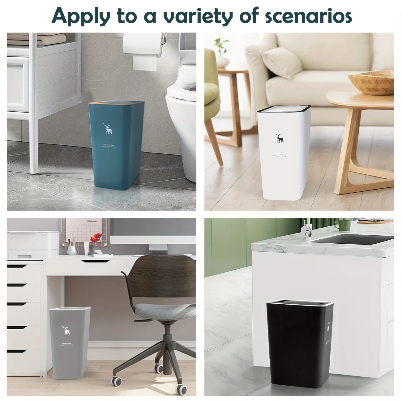 Múltiples usos: perfecto para usar en la cocina, la oficina, el baño o en cualquier otro lugar donde necesite un contenedor de basura de plástico confiable y elegante.