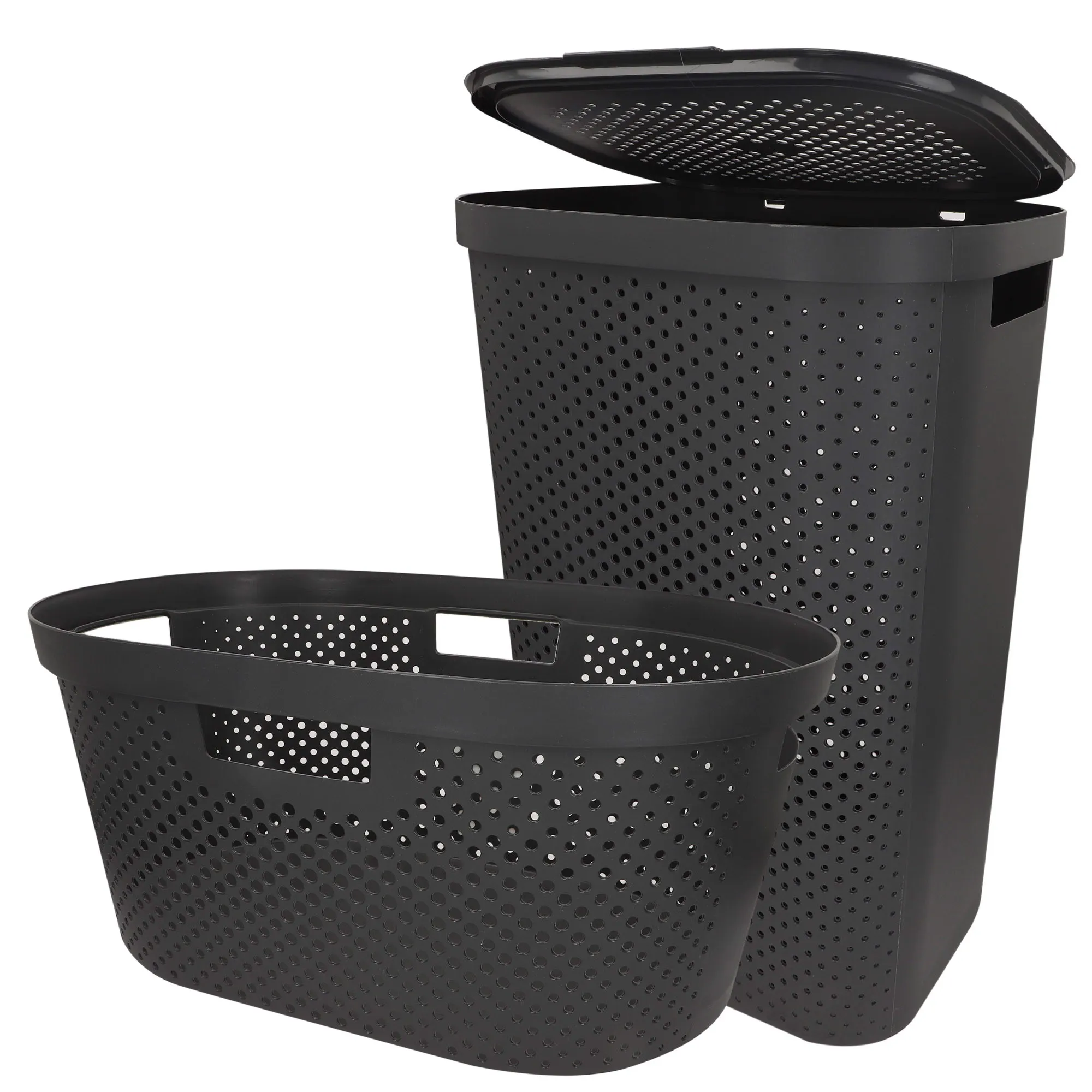 • Pack completo para la colada: incluye una cesta de 55L con tapa y un cesto de 45L sin tapa, ideales para clasificar y transportar la ropa