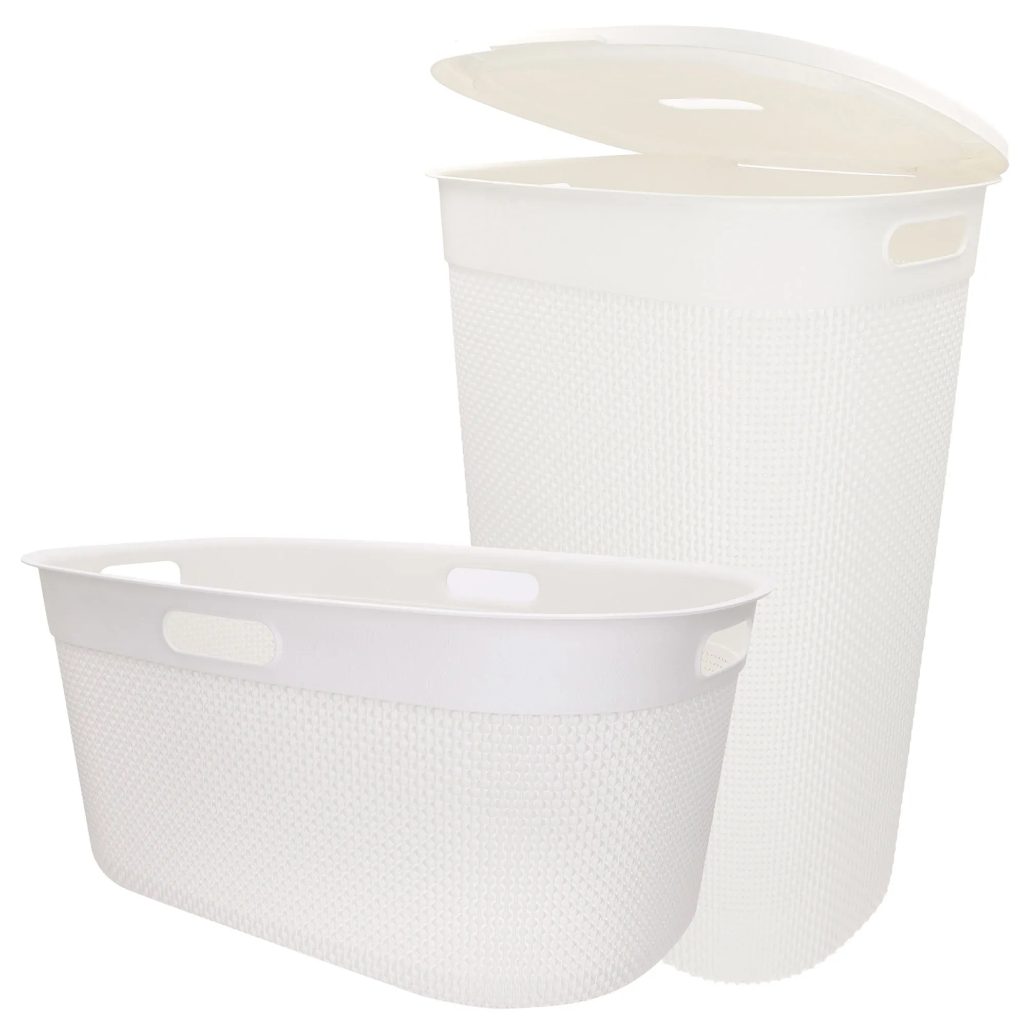 Curver Pack Colada Cesto 45L + Cesta con tapa 55L blanco