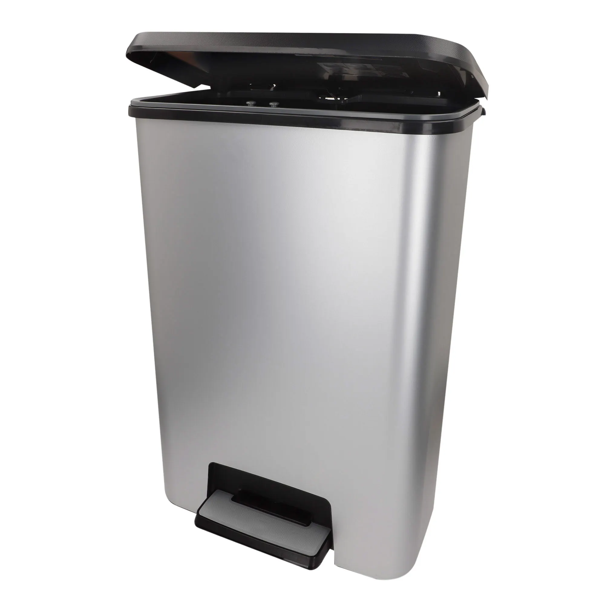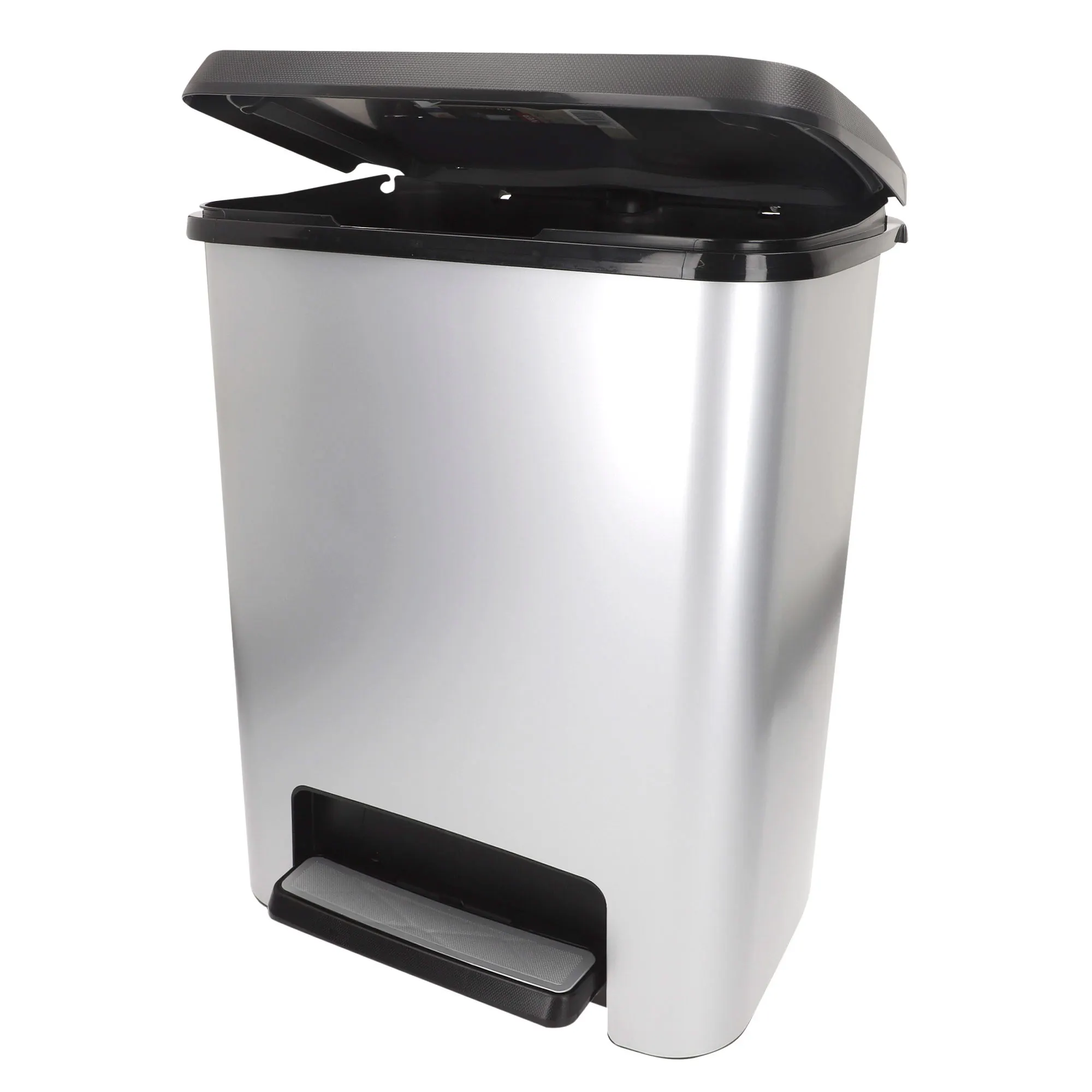 Gestiona tus residuos de manera cómoda y discreta con el cubo de basura Compatta de Curver. Su diseño compacto y funcional, más ancho que largo, lo convierte en la solución perfecta para espacios reducidos, como debajo de encimeras o islas de cocina, donde no sobresale ni interfiere en el paso. Con una capacidad de 50L (48x30,5x62 cm), es ideal para el día a día, ayudándote a mantener el orden en la cocina o baño. Su borde de soporte garantiza que la bolsa se mantenga siempre en su sitio y oculta para un aspecto limpio, mientras que su base extraíble facilita la limpieza tras los pequeños derrames. Además, el pedal removible asegura una mayor comodidad al usarlo. Todo esto con un diseño moderno con acabado metalizado que combina con cualquier estilo de hogar.