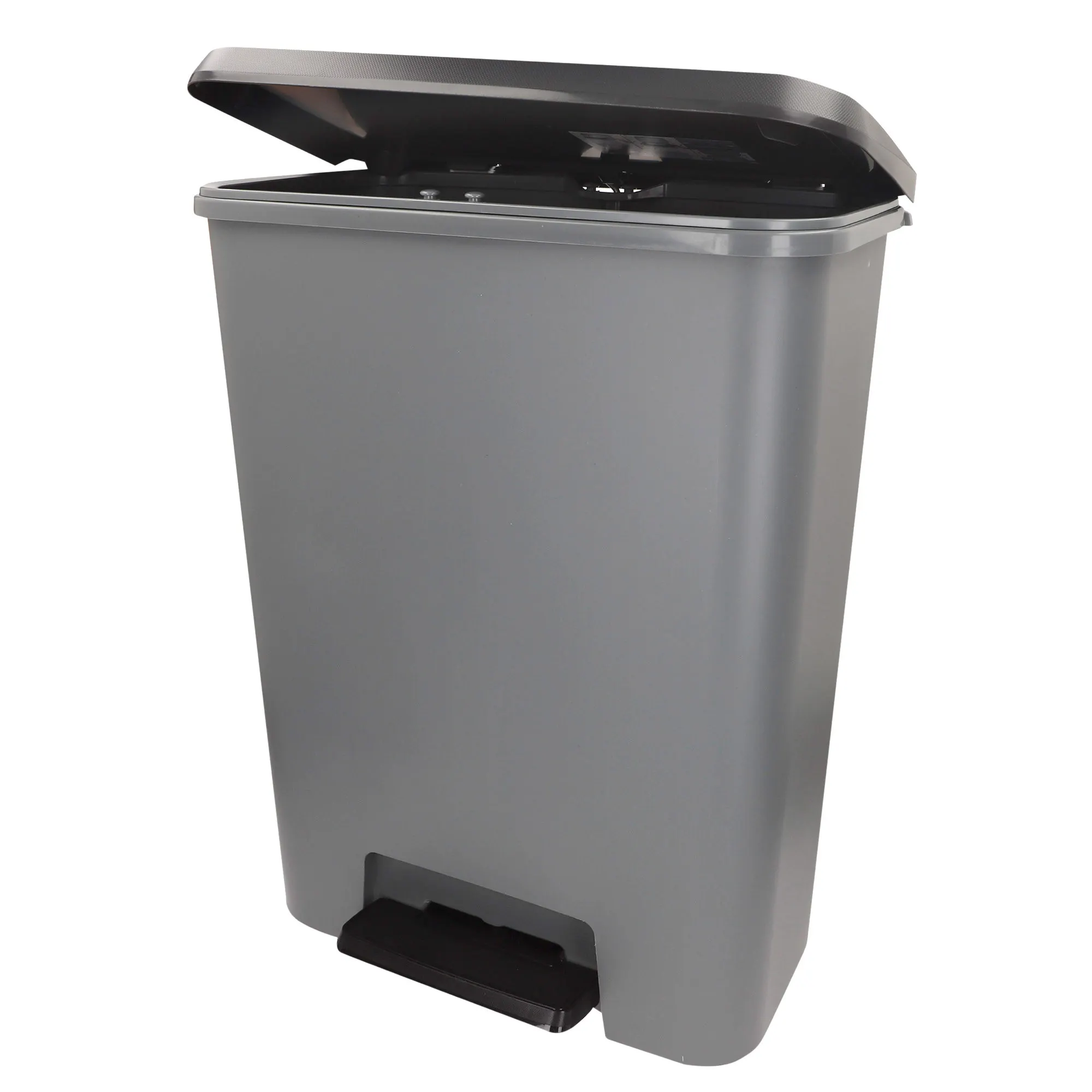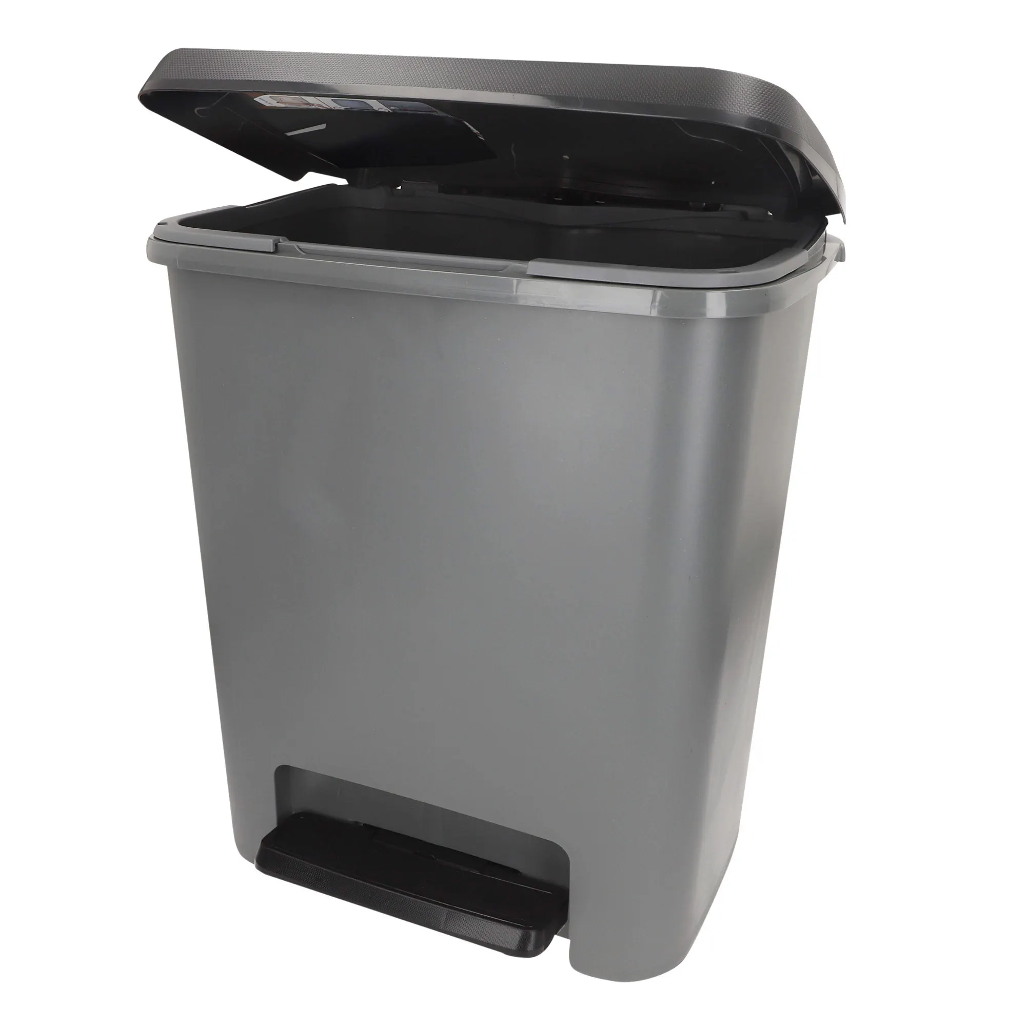 Curver - Cubo de basura Compatta 25L gris, diseño compacto y ancho, ideal para cocinas pequeñas o baños, soporte para bolsas, base extraíble fácil de limpiar, pedal removible para apertura higiénica, medidas 38x28x43 cm