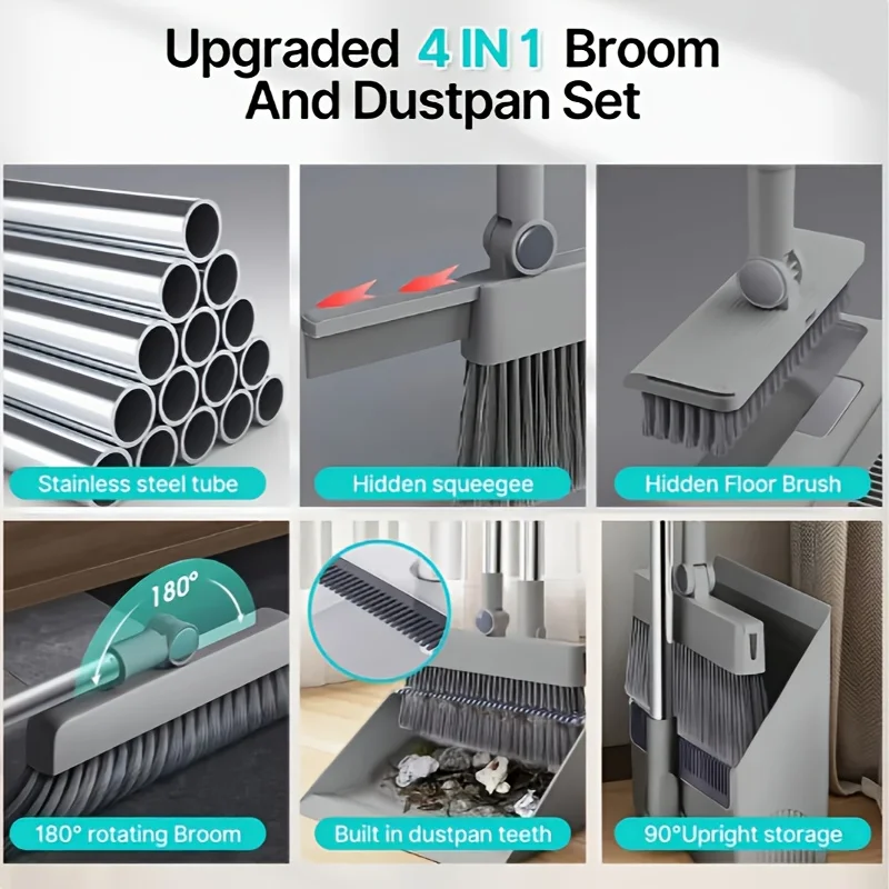 Juego de escoba y recogedor plegable 4 en 1: plástico duradero, diseño de fácil almacenamiento para limpieza del hogar, incluye escobilla de agua,
