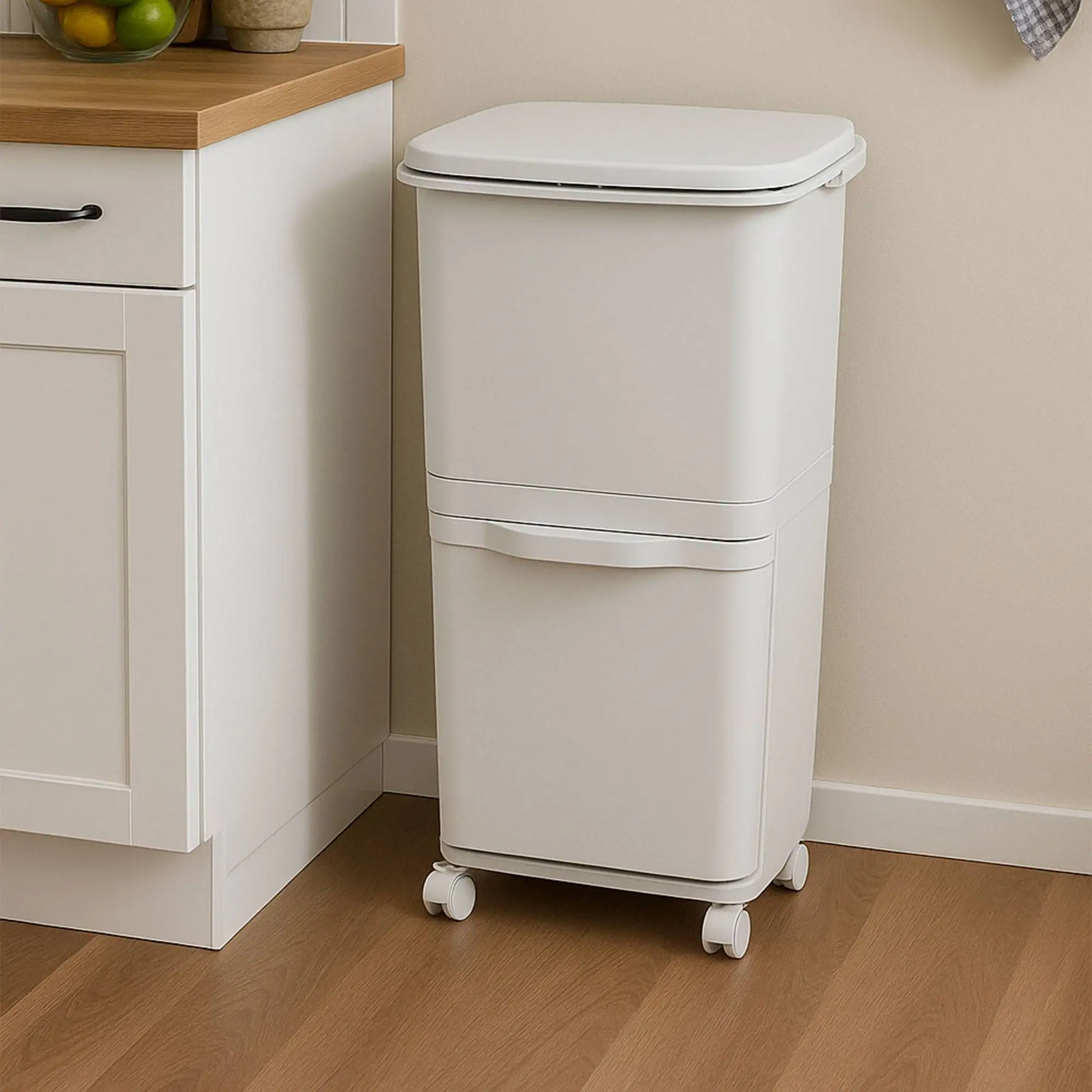 • Cuenta con una gran capacidad combinada de 38 litros, siendo un cubo de basura ideal para un uso diario intensivo manteniendo un diseño compacto.