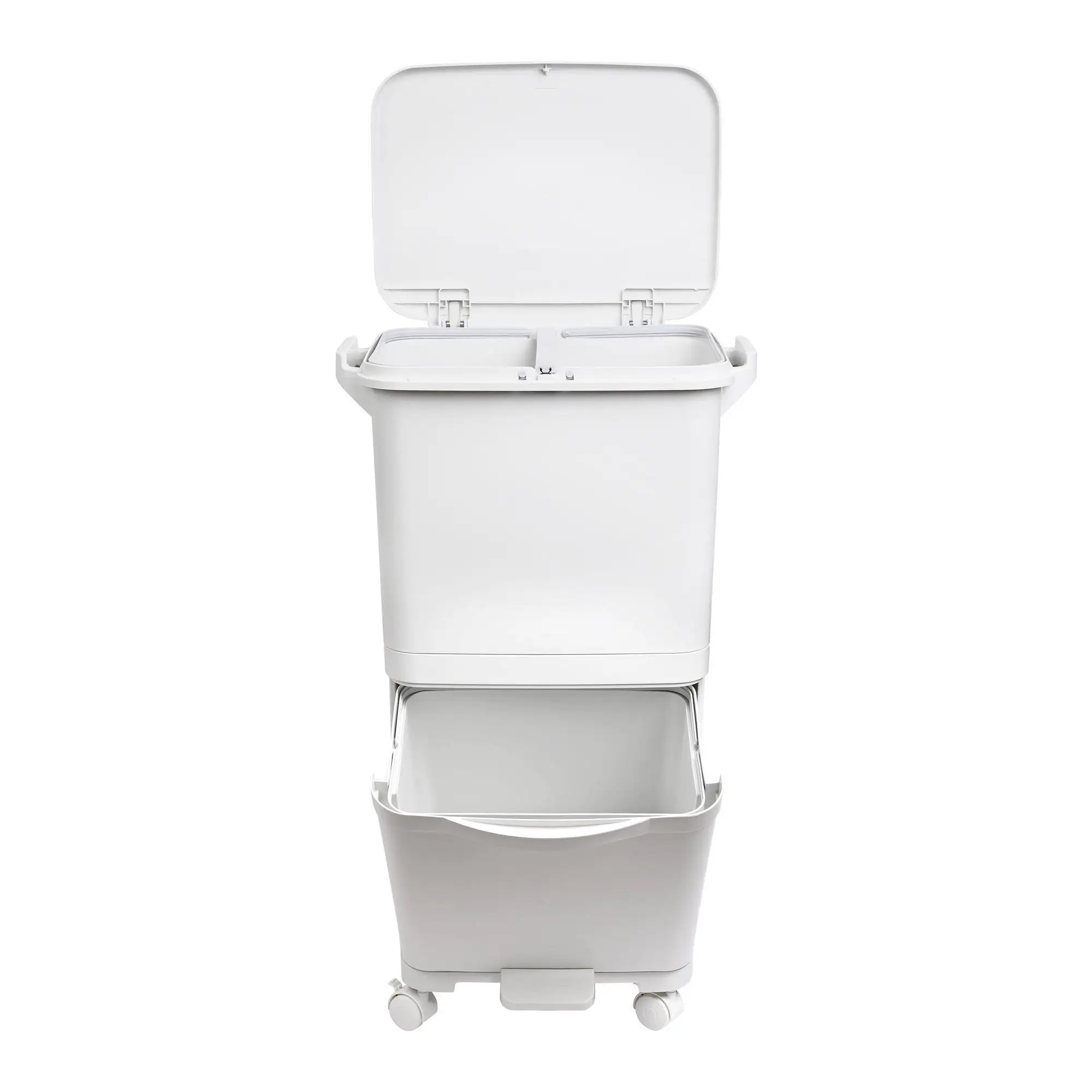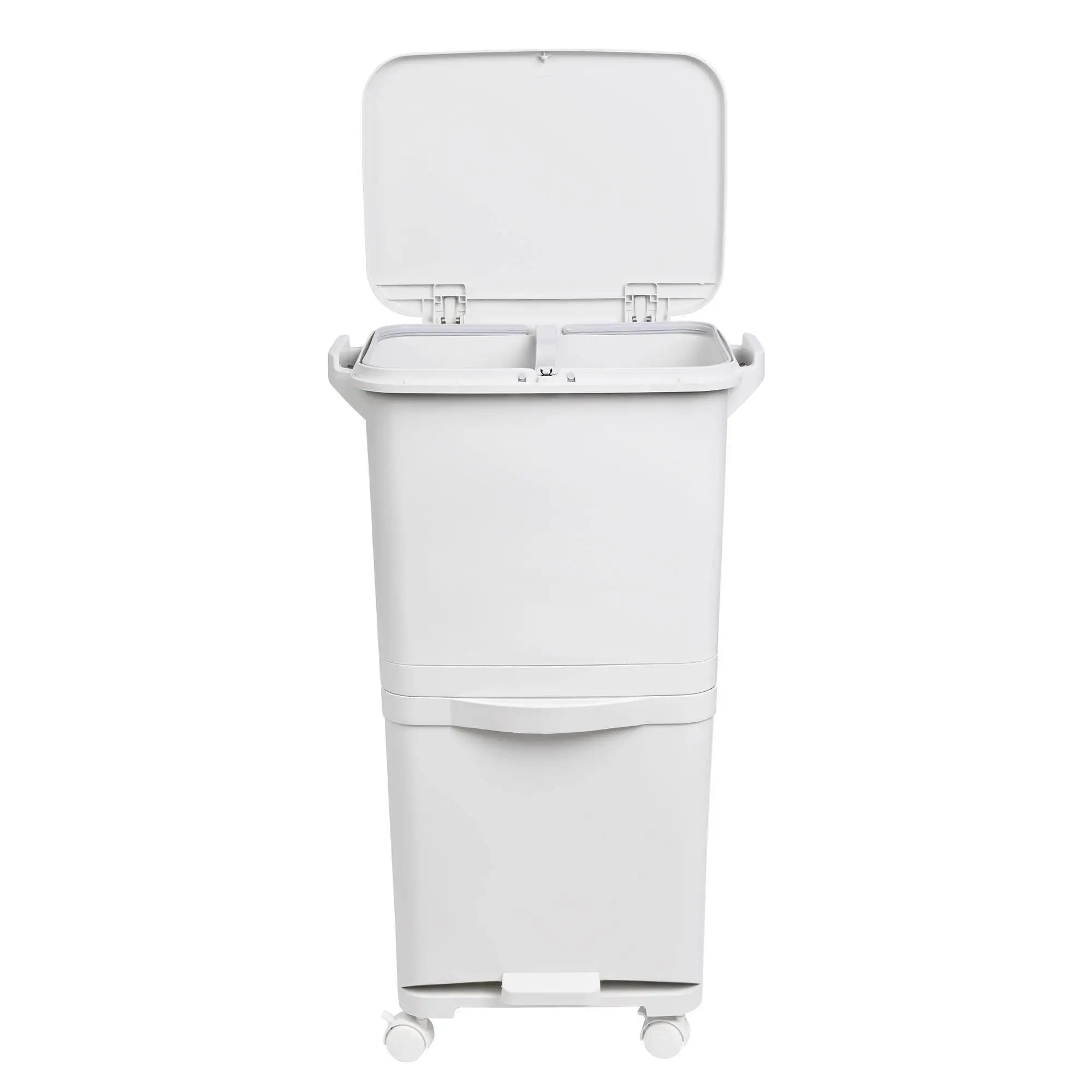 Papelera de reciclaje de clasificación selectiva con pedal, ruedas y asa de doble compartimentos de 38L (24L + 14L) o 42L (24L + 4L + 14L)