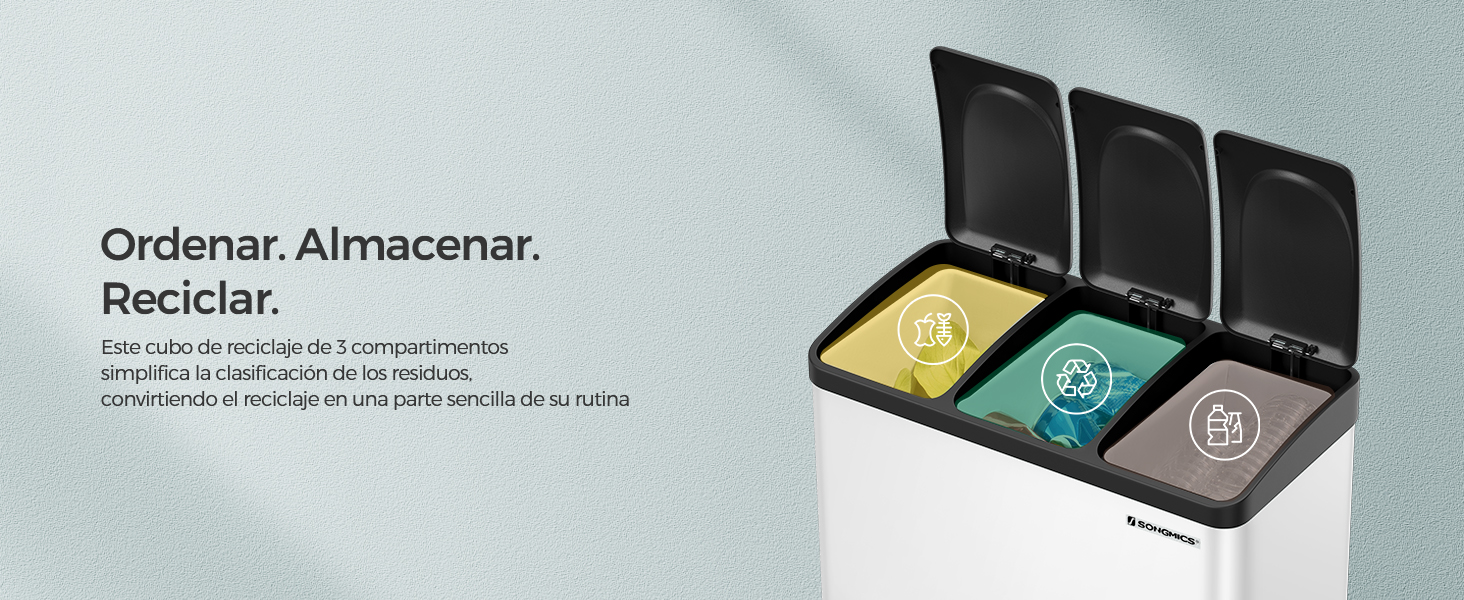 • [Cómoda codificación por colores] Cada compartimento de este cubo de basura viene con un pedal codificado por colores para identificación intuitiva y un funcionamiento manos libres, la clasificación de residuos sea fácil e higiénica
