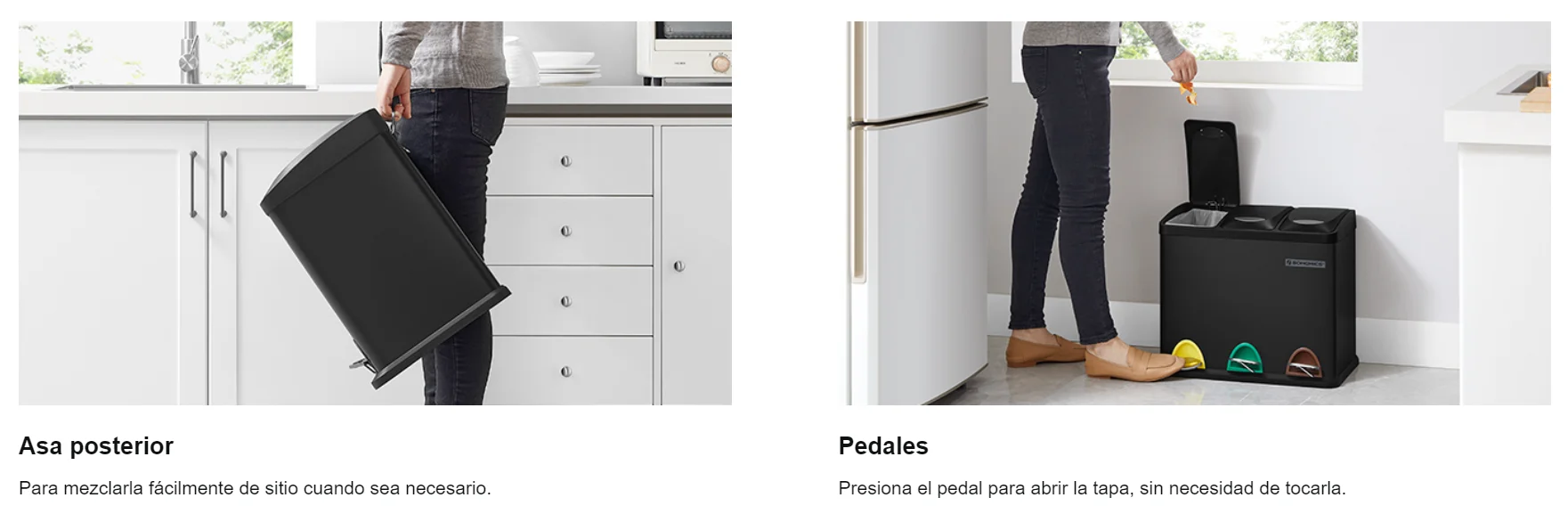 - Clasificación sencilla: Separa residuos en 3 compartimentos de 8L.
