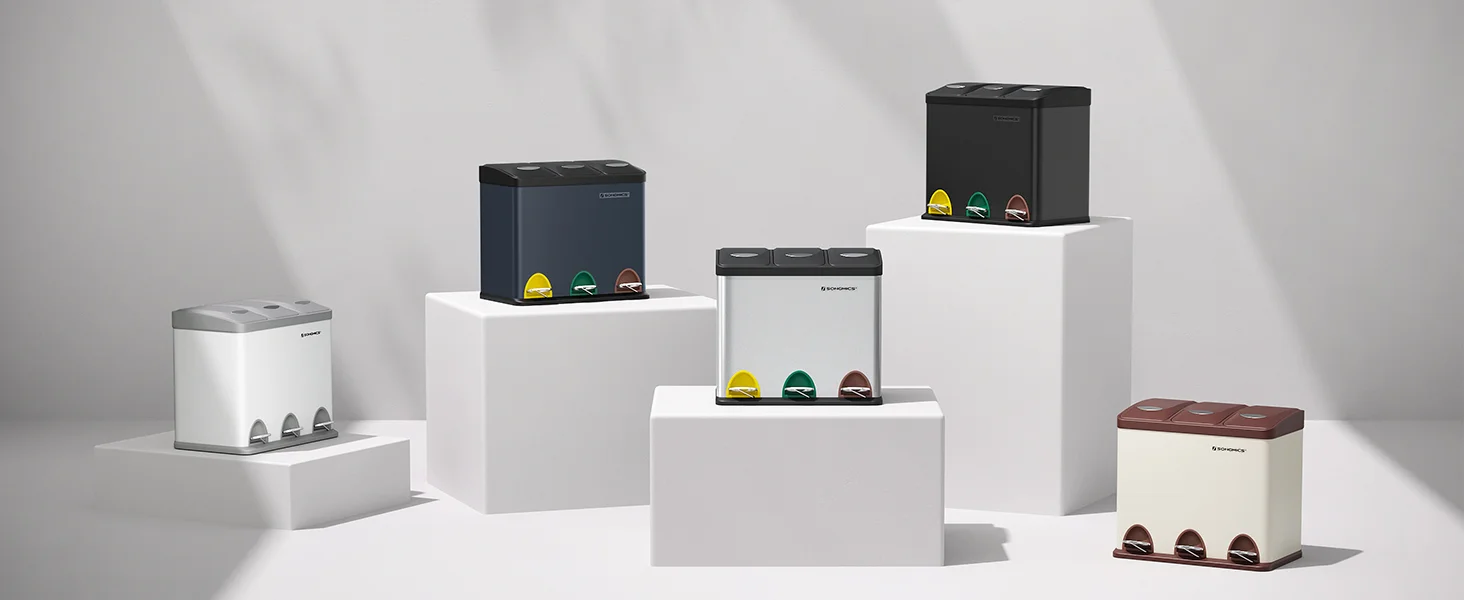 [Cubos y bolsas de basura] Con 3 cubos extraíbles, que se pueden quitar para vaciarlos o limpiarlos. Se incluyen 15 bolsas de basura de SONGMICS (código 008A) especialmente diseñadas para este cubo de basura