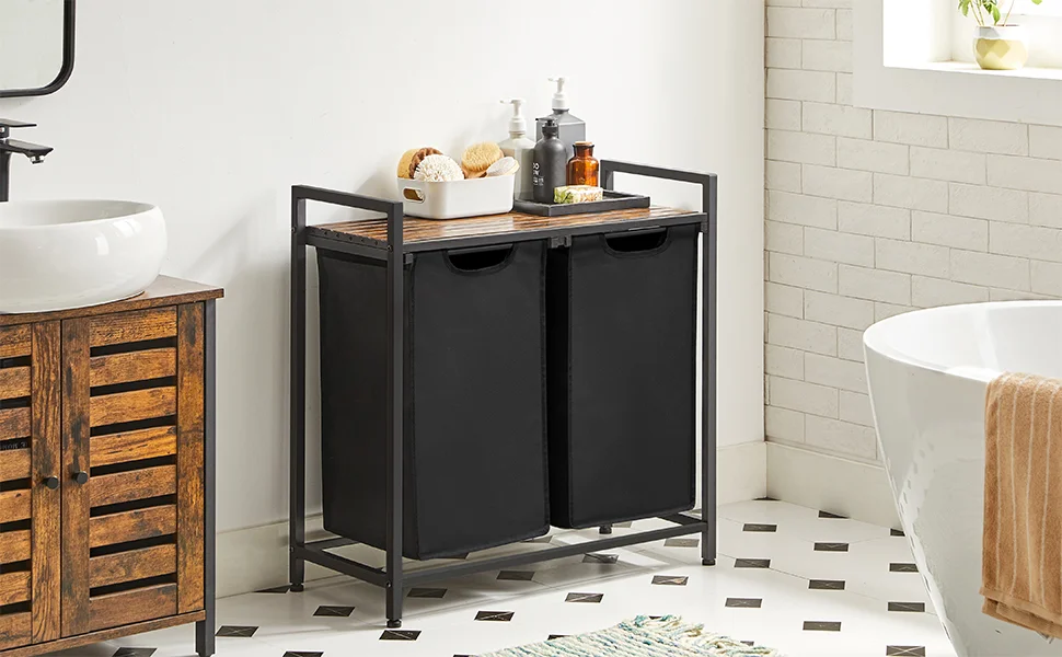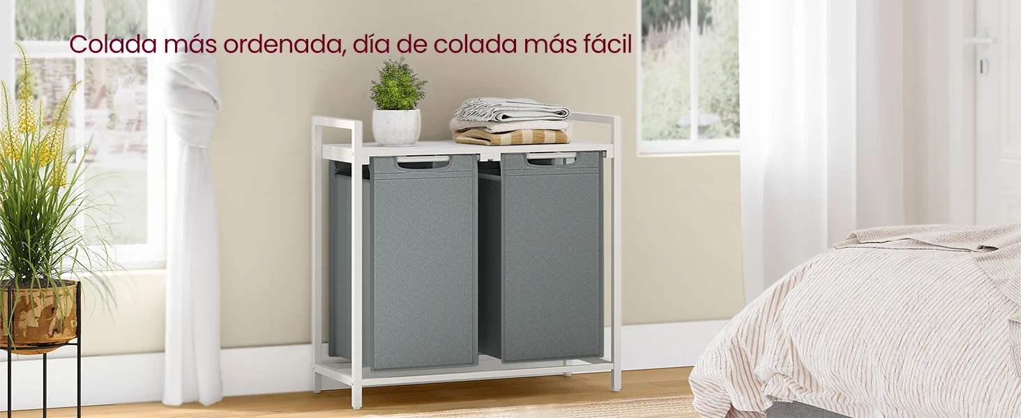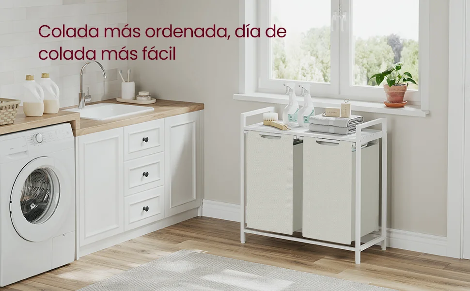 2 compartimentos: Este cesto frece una capacidad total de 92 L (46 L por bolsa); el diseño de 2 compartimentos ayuda a organizar prendas por tipo o a dividir las claras de las oscuras