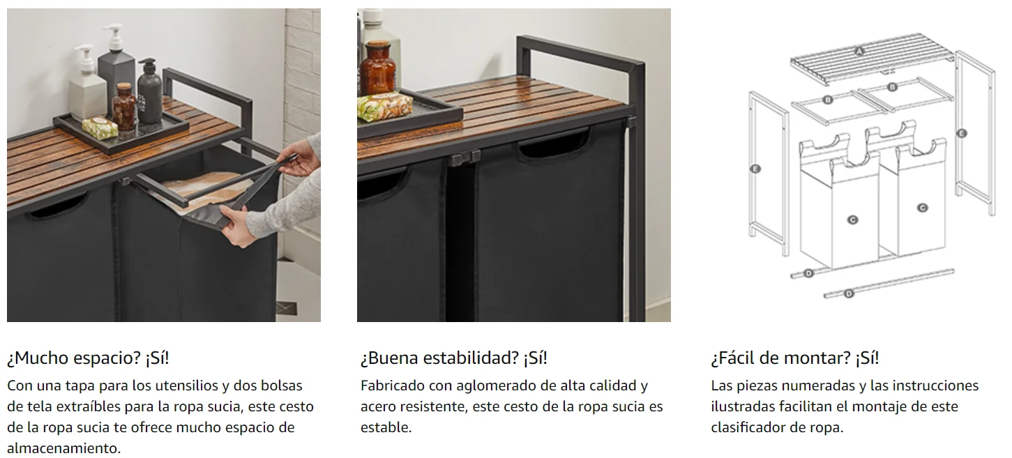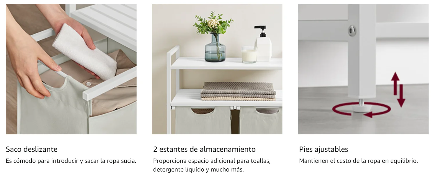 Espacio en la parte superior: La parte superior de este cesto de la ropa sucia te da espacio de almacenamiento adicional para colocar utensilios, detergente líquido y suavizante.
